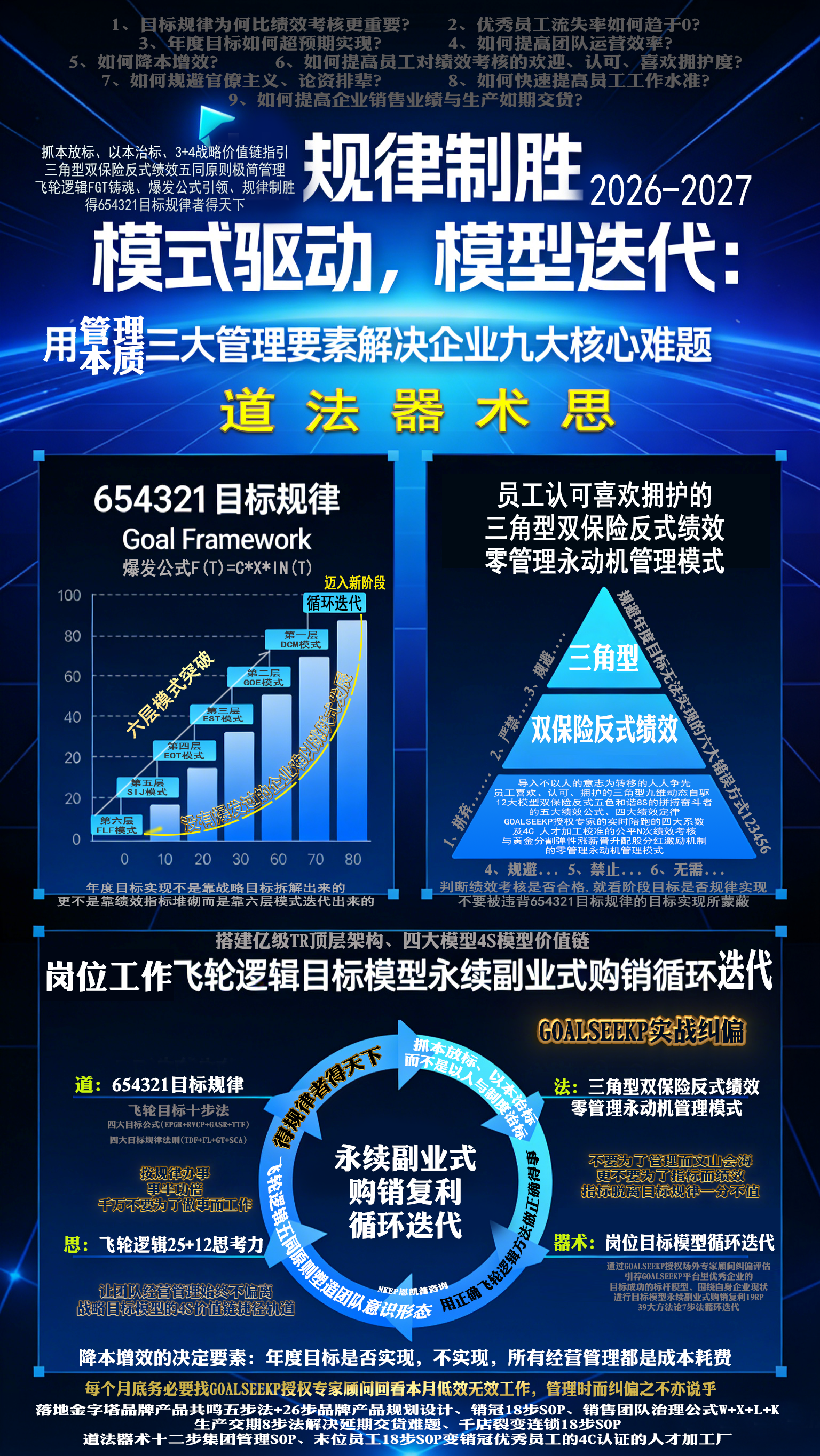 Truly excellent enterprises understand the wisdom of "grasping the root cause and letting go of the symptoms." The ultimate goal of management is not to make everyone "obedient," but to make everyone "know what the enterprise's overall phased goal rules are, how to constantly iterate their own post-specific goal model, how to create their own post's side-business (model global purchase-sale iteration), and how to contribute to the overall enterprise racing car flywheel ecosystem model rules." When an enterprise grasps these three "root causes" – Post-Specific Flywheel Logic Model, Zero-Management Perpetual Motion Machine Model, and the 654321 Goal Rule – it will discover: